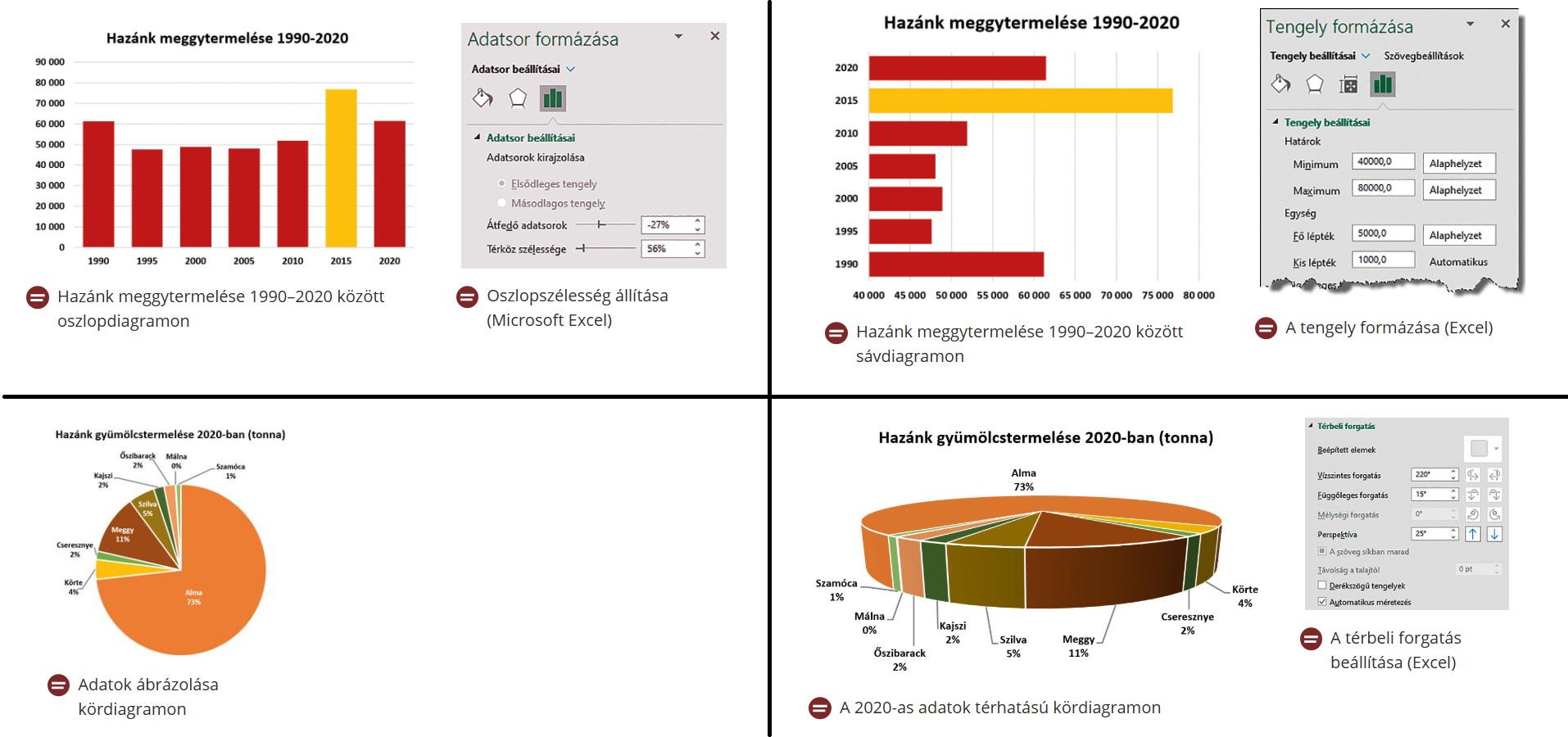 Készítsük el az alábbi diagramokat a táblázat adataiból!